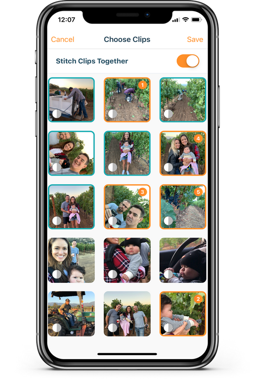 Just pick your favorite media and download individual clips or Stitch them into a consolidated video. They save to your mobile device.